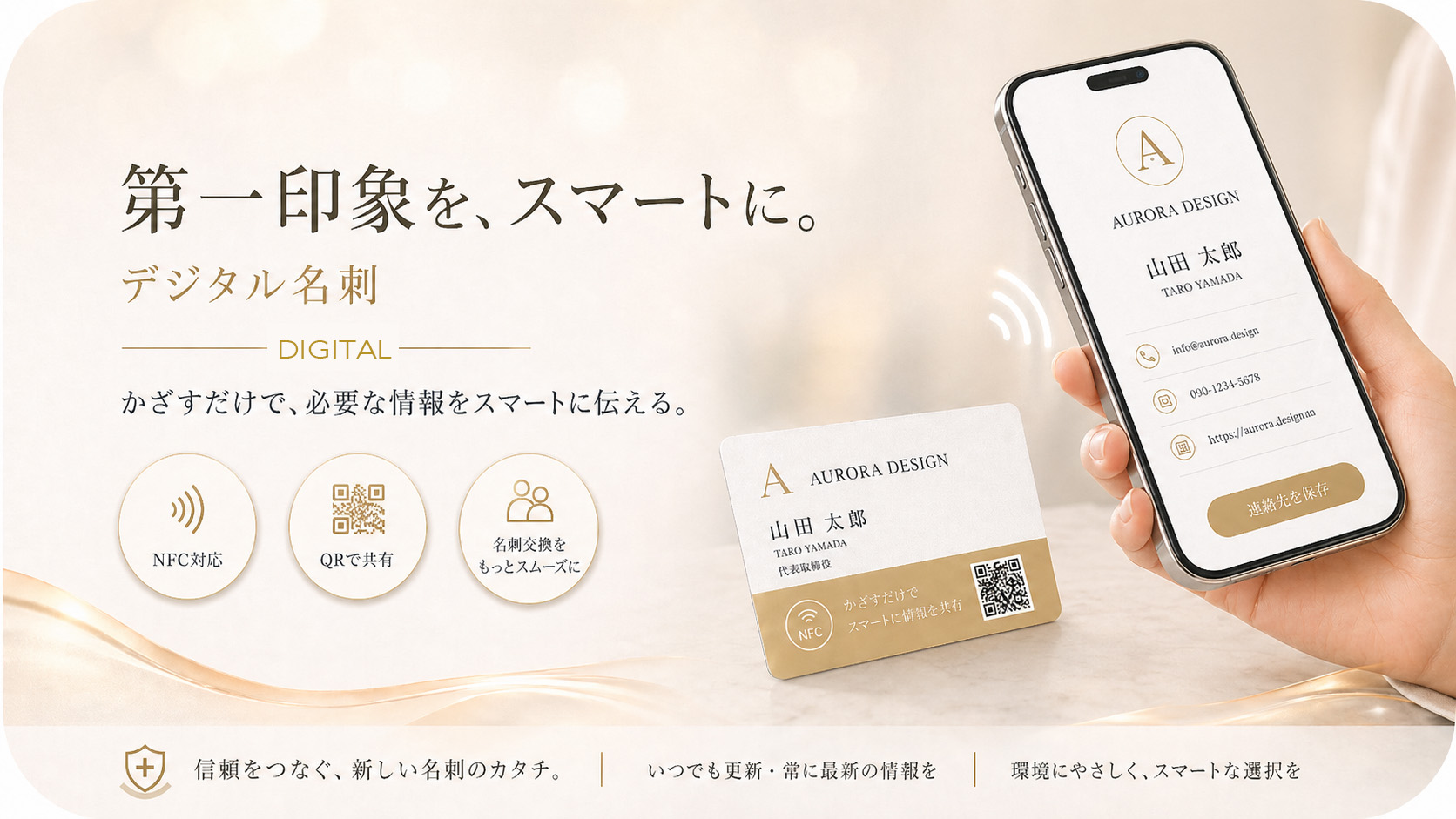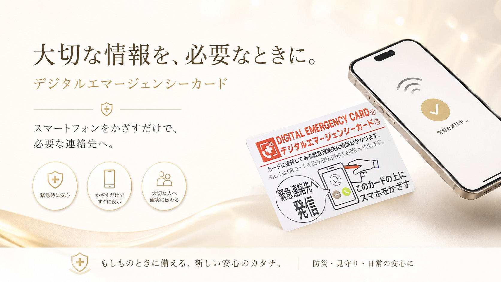 デジタルカードだから、スマホにかざすだけで緊急連絡先に発信ができます。