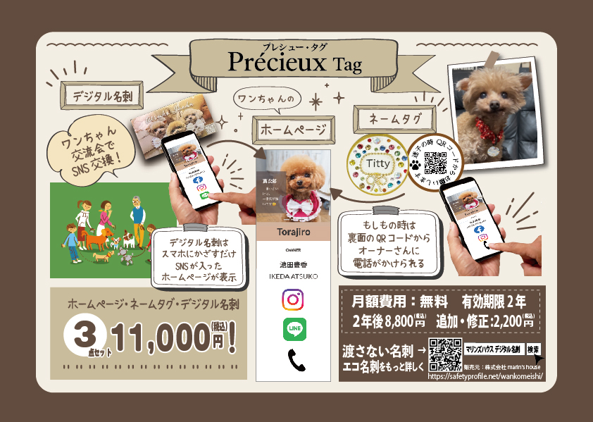 ワンちゃんのホームページとデジタル名刺と迷子札とセットで11,000円〜作成可能です。